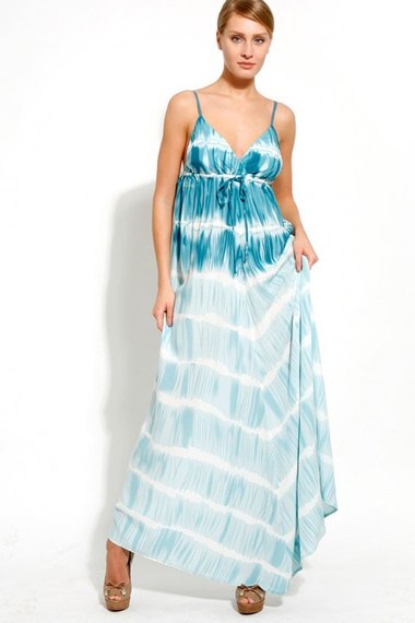 Длинный летний сарафан из вискозы цвета морской волны, переходящего в белый цвет. Модель на тонких регулирующихся бретелях, под грудью затягивается тонкий поясок на кулиске.