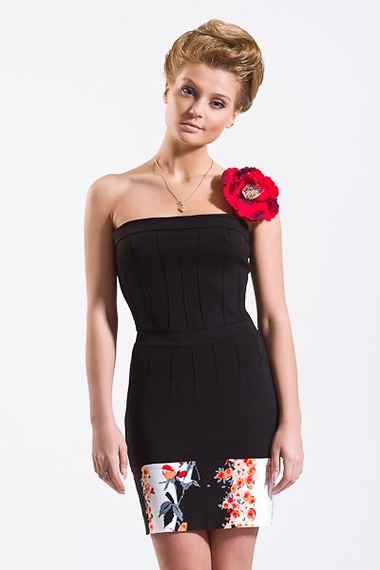 Интересная модель платья: снимая и надевая лямочки, комбинируя их с красной брошью, Вы можете бесконечно экспериментировать! Платье застегивается на молнию, которая проходит через всю спину, силуэт повторяет изгибы тела - очень красиво!