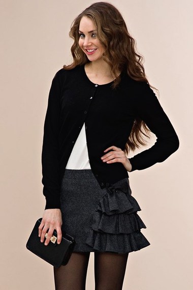 Простой чёрный кардиган, выполнен в лучших традициях классического стиля.