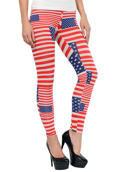 Стильные легинсы из хлопковой ткани. Модель с поясом на резинке, декорирована оригинальным принтом в цвет флага США.