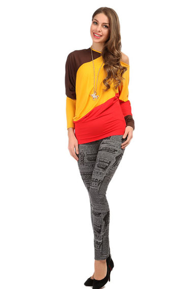 Стильные серые легинсы с газетным принтом, посадка средняя с поясом на резинке.