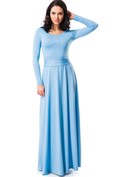 Нежное голубое платье в пол сделает Вас принцессой из сказки! Длинные рукава, большой вырез на спине и длинный пояс - традиционное платье в пол от Mondigo!