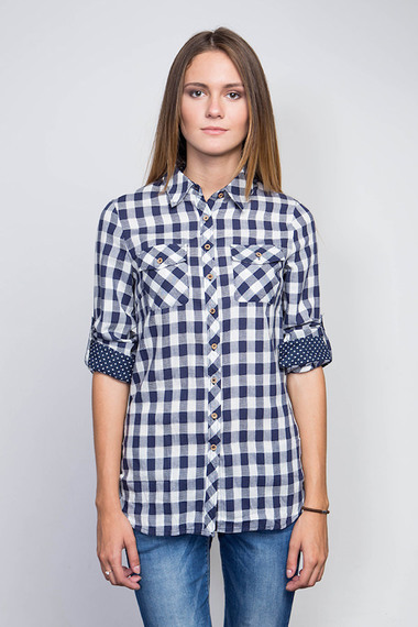 ОписаниеРубашка в клетку с длинным рукавом. Модель удлиненная, приталенного кроя, изготовлена из облегченной хлопковой ткани. При желании длинный рукав можно трансформировать в 3/4, для этого на рукавах имеются пуговицы и специальные прихваты. Рубашка отлично впишется в повседневной гардероб любой модницы.