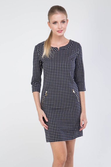 Фото товара 8848, платье в клеточку с карманами на молнии