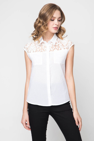Белая блузка с кружевными вставками на плечах Marimay