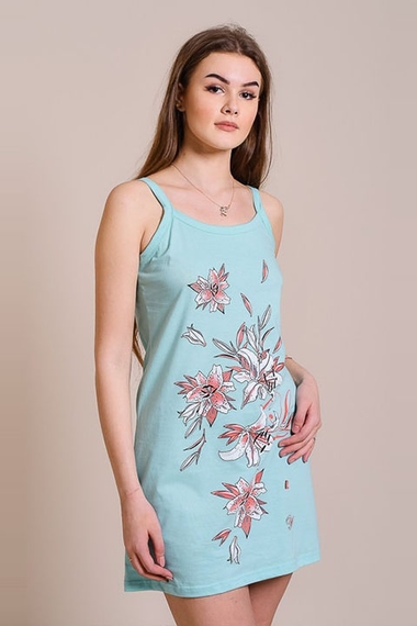 Фото товара 9116, ментоловая сорочка на бретельках с цветами