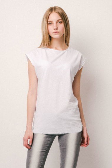 Фото товара 9183, белая удлиненная футболка из хлопка