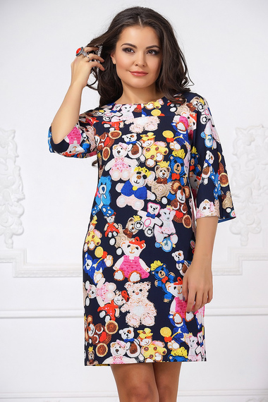 Интересная расцветка. Казалось бы детский рисунок с мишками, но смотрится очень оригинально. Фасон тоже понравился, а именно то, что платье приталенное, но не облегающее.