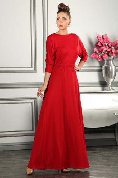 Фото товара 9567, красное вечернее платье в пол с длинными рукавами