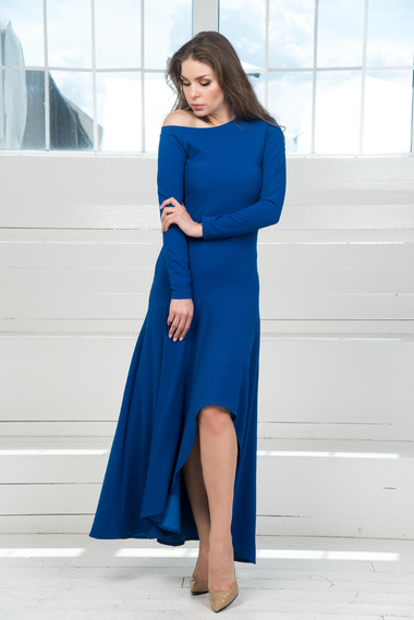 Детали одежды: асимметричный подол, вырез горловины "лодочка