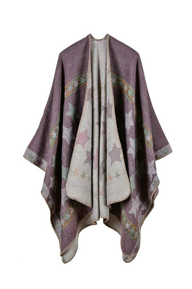 свободной, эффектной, не сковывающей движений. В итоге этот предмет гардероба настолько сильно трансформировался под влиянием модных тенденций, что от прежнего облика в нем осталось лишь название и полное отсутствие рукавов. Вот почему пончо ""Лилас"" - это универсальный аксессуар, который не только согреет в прохладную погоду, подарит чувство уюта и тепла, но сделает Вас настоящей законодательницей моды, ведь в нем спокойные линии и пастельные сиреневые тона так удачно переплелись со смелым этническим стилем."