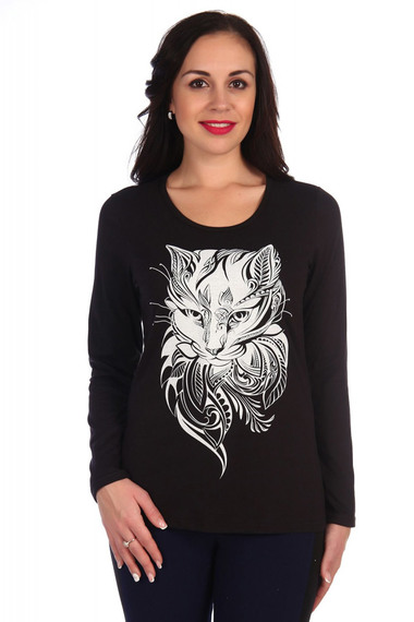 Черный лонгслив с котом Lovetex