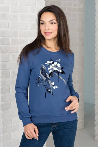 Фото товара 19632, синяя толстовка с птичкой