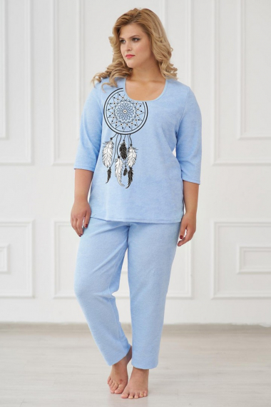 Хорошая пижама, цвет как на фото (брала голубую), ткань похожа на тонкое махровое полотенце, очень мягкая, вполне тепленькая.