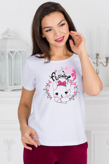 Фото товара 19677, белая футболка с зайчиком