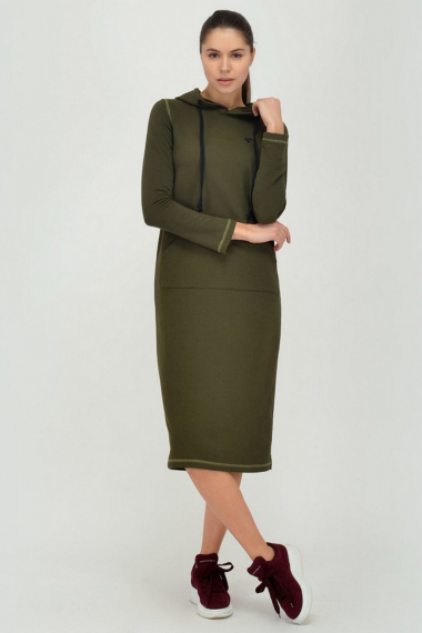 Фото товара 19885, трикотажное платье хаки с капюшоном
