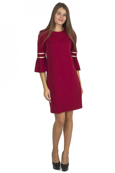 Фото товара 20180, бордовое платье с золотой тесьмой