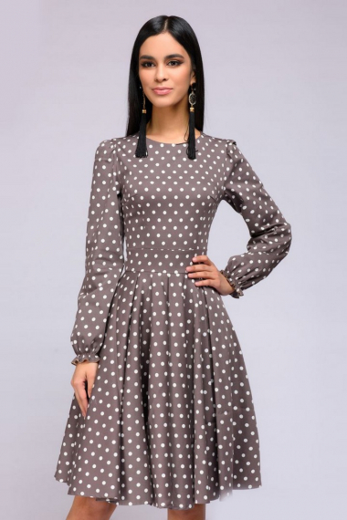 Бежевое платье в горошек с пышными рукавами 1001 DRESS