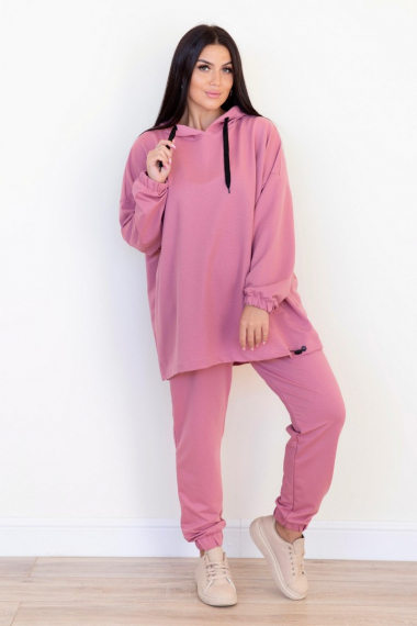 Фото товара 21559, женский розовый костюм с длинной толстовкой