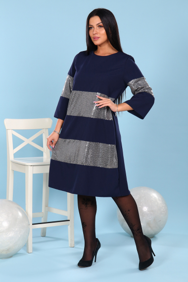 Фото товара 21673, нарядное темно-синее платье с серебристыми блестками