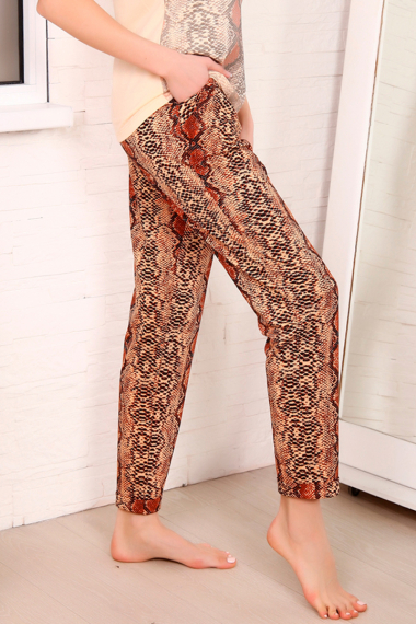 Фото товара 22100, хлопковые брюки с принтом змея