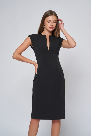 Фото товара 22221, черное платье футляр с глубоким вырезом