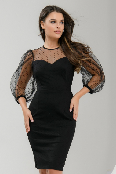 Фото товара 22238, платье черное с объемными рукавами длины миди