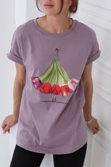 Фото товара 22953, женская фиолетовая футболка оверсайз